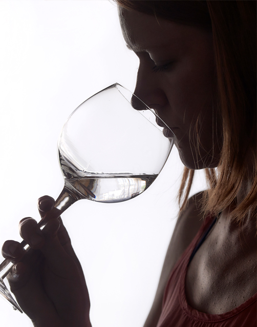 Transparent, colorless, presents a subtle density that is noticeable with the ripples that appears in the glass when it is moved. Bright and crystalline.